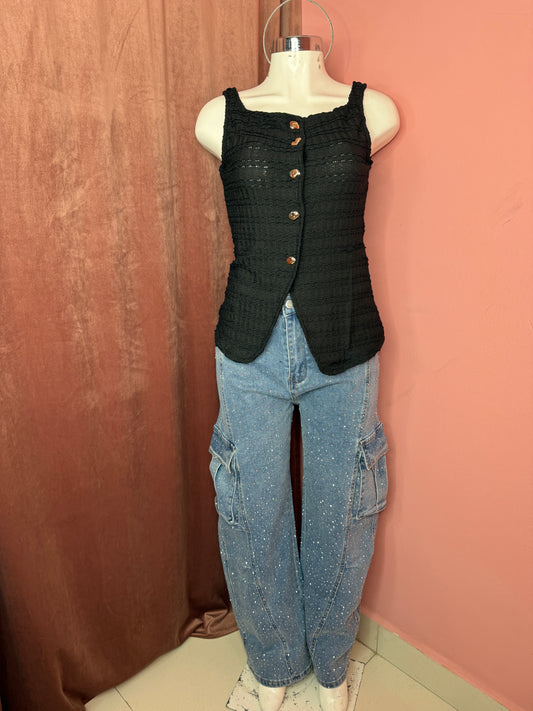 Blusa negra botones dorados
