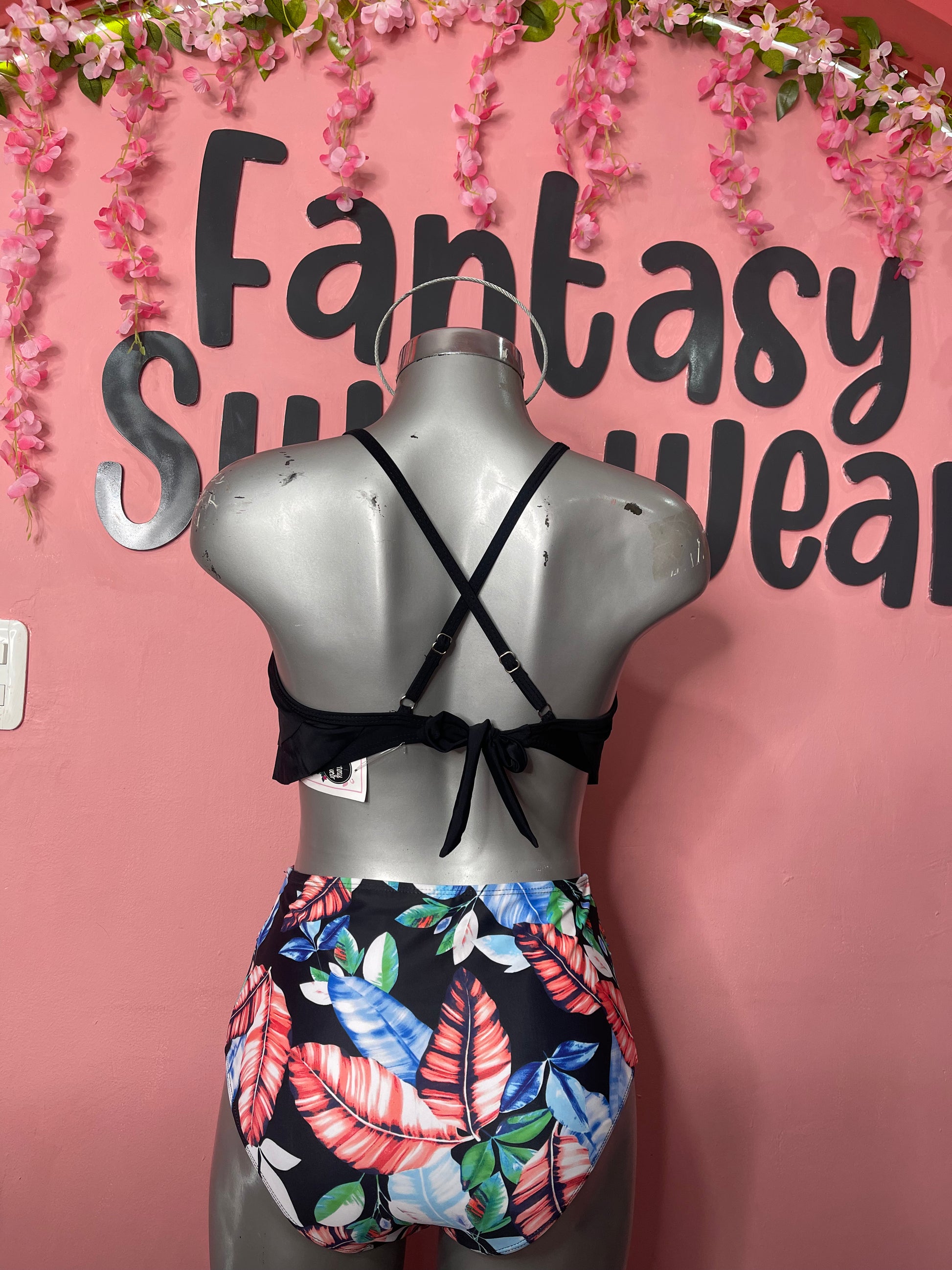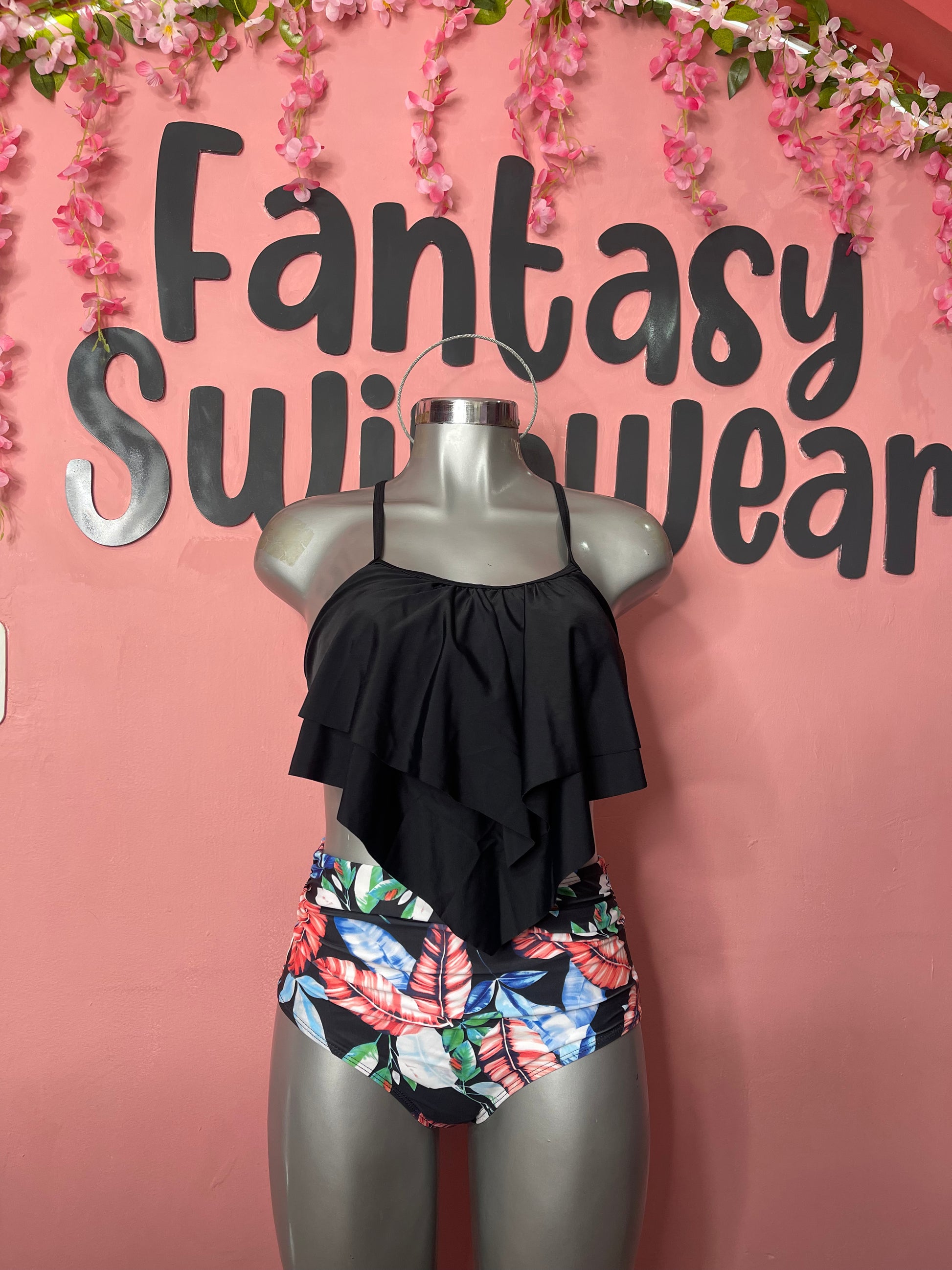traje de baño de 2 piezas tiro alto con olan en la parte de la blusa que cubre el abdomen, se puede combinar con match familiar.