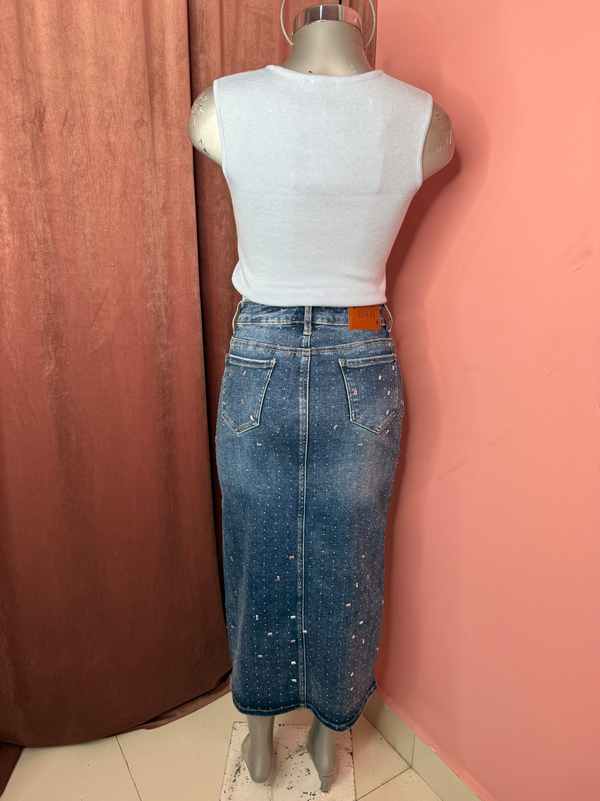 Falda larga de mezclilla stretch con brillos