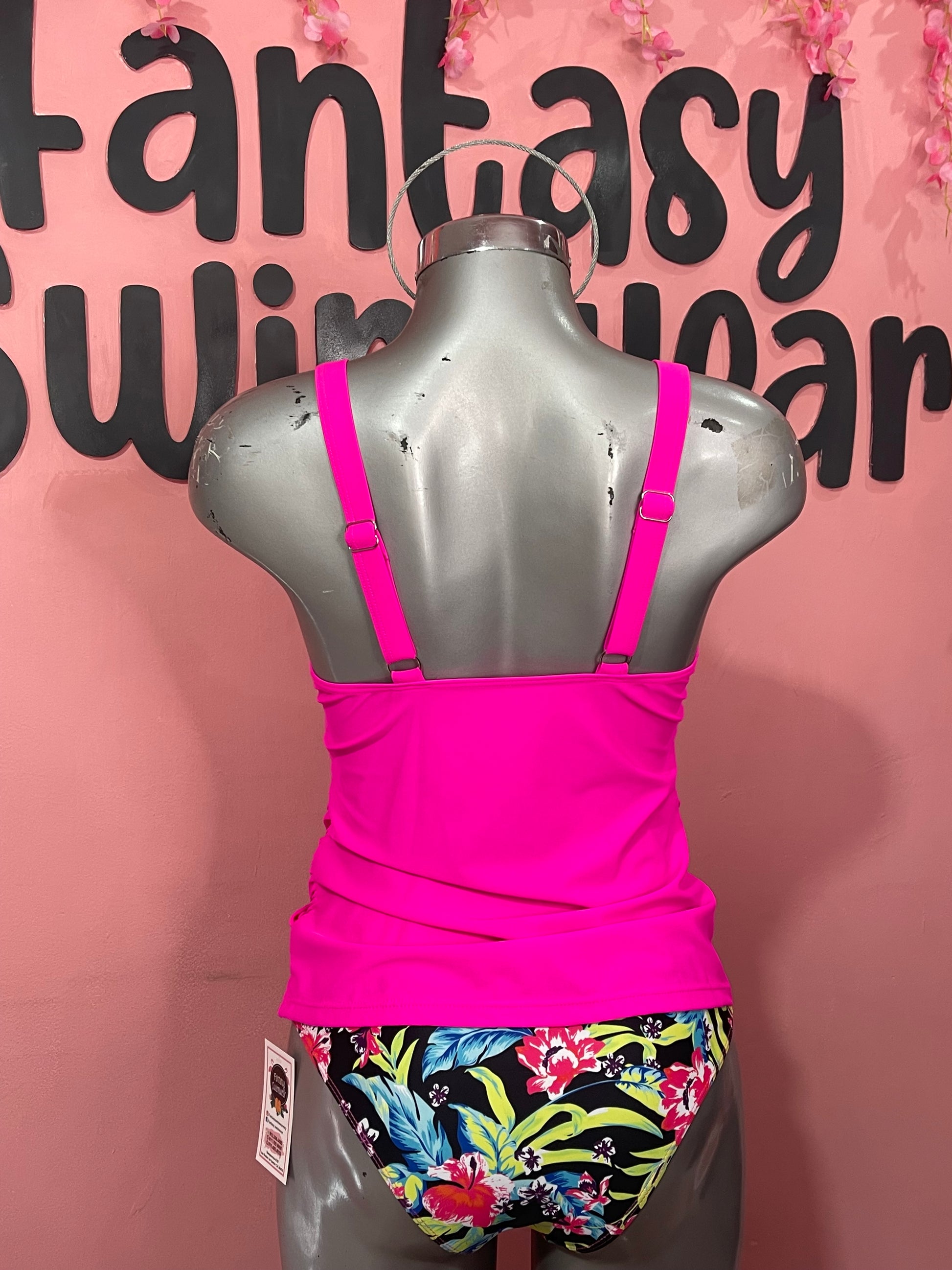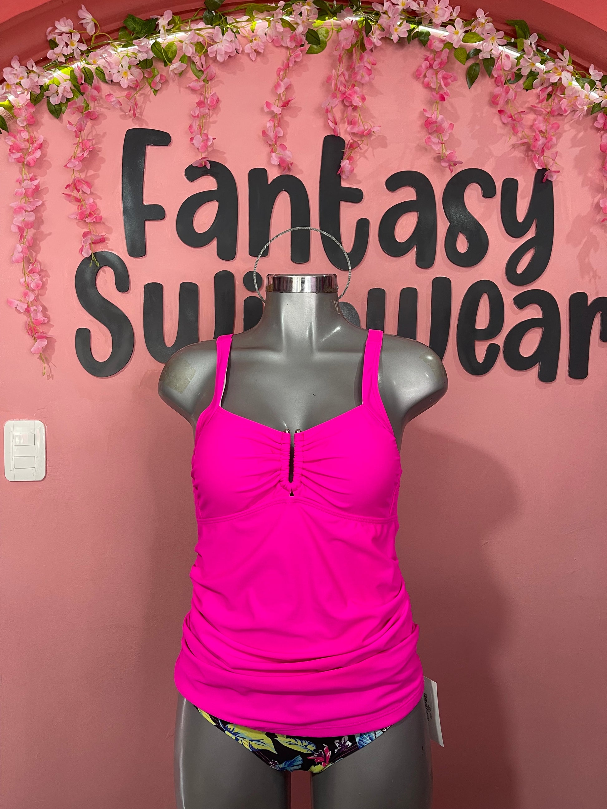 Traje de baño 2 piezas blusa larga color rosa y bikini