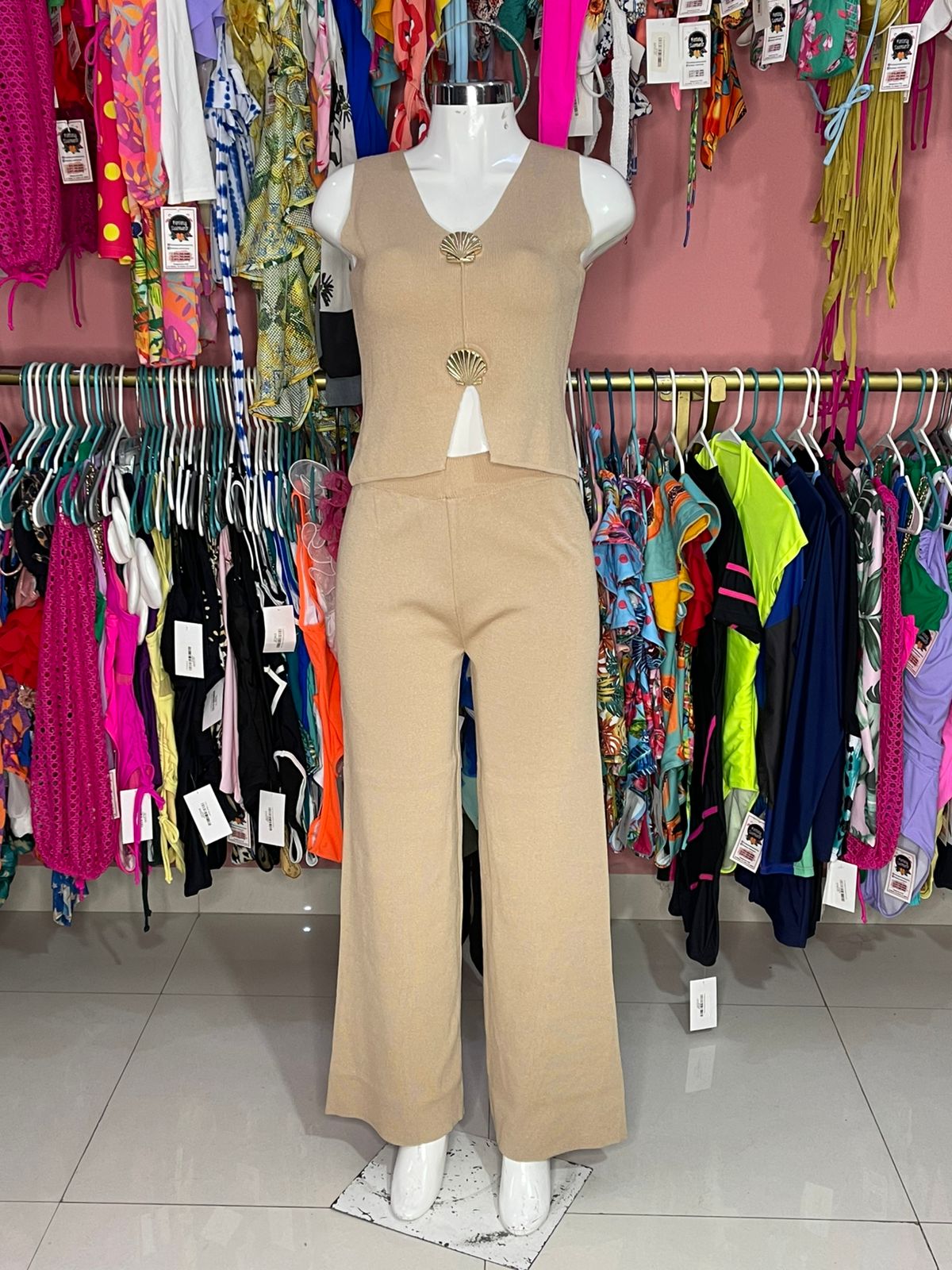Set de dos piezas de chaleco con botones de conchita disponible en varios colores